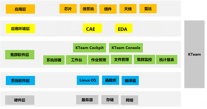 KTeam是基爾科技自主研發(fā)的高性能協(xié)同設(shè)計(jì)仿真軟件平臺(tái),可實(shí)現(xiàn)設(shè)計(jì)與計(jì)算集群資源統(tǒng)一部署、使用、瀏覽、管理、監(jiān)控和統(tǒng)計(jì)等,可大幅提高仿真效率,簡(jiǎn)化平臺(tái)管理。KTeam由應(yīng)用工作臺(tái)、作業(yè)調(diào)度模塊、文件管理模塊、集群監(jiān)控模塊、資源統(tǒng)計(jì)模塊組成。選用KTeam及其相關(guān)服務(wù),可以幫助用戶部署操作系統(tǒng),安裝和測(cè)試集群軟件以及應(yīng)用環(huán)境,基于高性能集群硬件設(shè)備,提供傳統(tǒng)的設(shè)計(jì)環(huán)境和高速的仿真體驗(yàn)。